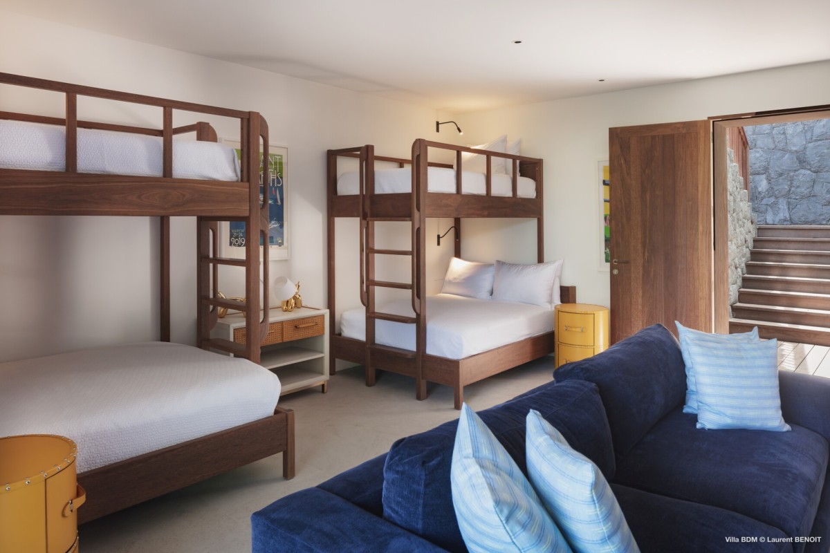 Bedroom 5: Bedroom with 2 bunk beds (single over double), A/C, private terrace, safe and en-suite bathroom with bathtub, vanity and WC. 4 guests maximum
