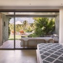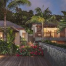 Upper Level: The primary suite enjoys its own outdoor sitting area for added seclusion, alongside a guest bedroom with elevated views.
