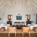Indoors you will enjoy the open floor plan of the great room that features an enormous gourmet kitchen, which leads to the interior living room or head to the small office and entertainment room beyond. The entire length of the shared space, however, is open to the terrace, and also furnished with a diversity of comfortable loungers as well.
