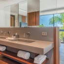 The sea-side facing walls are all glass, opening each room to natural island light and ocean views from everywhere in the Golden Palm. The top hallmark of the Golden Palm Villa is a poolside terrace and infinity pool that disappears onto the ocean horizon. Outdoor showers allow for scenic enjoyment and a seamless transition from poolside to the indoors.