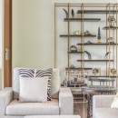 Below the pool is an exercise room where guests can enjoy a morning workout followed by one of our in-house spa treatments. Architecture and furniture are modern with sandy-gray seating offsetting warm wood tones in the kitchen and entertainment center. Accent pieces are glass and chrome with two distinct golden palm statues standing sentinel to a large window that opens the living space to the island on two sides. Wide-open space combined with privacy makes the Golden Palm an ideal vacation getaway.