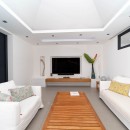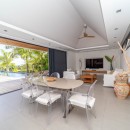 The pool sits at the heart of the terrace, and while it opens to the truly stunning scenery of St. Jean below, it is also framed by natural palms, a large wooden sun deck, and a spacious verandah. The verandah is furnished as an outdoor living space with lounging areas, al fresco dining and oversized sun beds. It opens into the great room, which is a flawlessly designed space that maximizes the natural light, lovely sea breezes and perfect scenery.