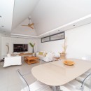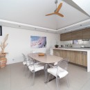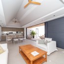 With its high, white ceilings, natural wooden furnishings and neutral palette of sand, cream and maple, it creates a very organic setting. The great room includes a large living room with entertainment space, another dining room area and the full-sized, gourmet kitchen equipped with all that you would need for meals or snacks of any kind.