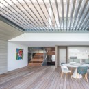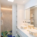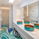 The vividly colored home features a contemporary design. The combination of the design and the vivid colors create a light-hearted feeling to the space.