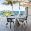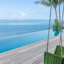 Lounge on the terrace beside the overflowing heated pool. The style of the pool makes it appear to be overflowing into the sea below. You can choose either traditional style loungers or vividly colored swing chairs to relax in beside the pool.