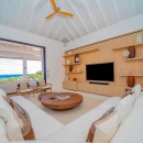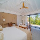 Bedroom 5: Lower level bedroom with a queen-size bed, dressing room, A/C, ceiling fan, safe, TV, ocean view and en-suite bathroom with shower, double vanity and WC. 2 guests maximum