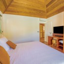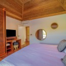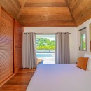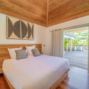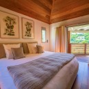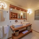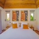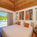 Villa Vi features four elegantly appointed bedrooms and three bathrooms, with a mix of king and queen beds. Two of the bedrooms open directly onto the pool terrace, while the third connects to the covered terrace. With vaulted ceilings, natural wood accents, and vibrant colors, each room exudes a romantic and welcoming charm.