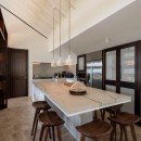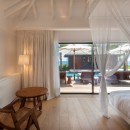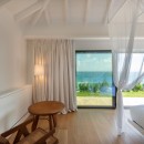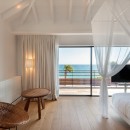 Over The Ocean villa features four beautiful bedrooms, each equipped with queen beds, ocean views, and en-suite bathrooms. One of the bedrooms is located on the first floor, boasting a private balcony for moments of serenity. The remaining three bedrooms are situated on the main level across different buildings, offering direct access to the terrace with the pool or the tranquil garden. With television sets, dressing rooms, elegant curtains, and soothing sandy tones, these bright and airy rooms create a soft and inviting atmosphere within the idyllic surroundings.