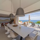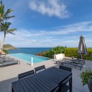 The terrace boasts a commanding panorama, with the magnificent infinity pool seemingly merging with the vast deep-blue ocean. Amongst the towering palm trees, an al fresco dining area beckons, conveniently positioned near sun-drenched deck chairs for moments of pure relaxation beneath the Caribbean sun. Adjacent to this, an outdoor lounge invites you to relish cocktails in the gentle ocean breeze. A brief stroll along a tranquil pathway leads you to the beach, accessible day or night. In this tropical paradise, time slows down, allowing you to savor each moment at your own unhurried pace.