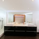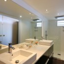 Step out onto the private terrace and you are beneath the canopy of your verandah. Here find your al fresco dining area and the central portion of the T-shaped pool. The pool branches outward to stretch along the length of the terrace and features a sun deck at both ends. There is also a barbecue area at one end.