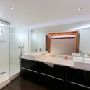 The two bedrooms also open to the terrace, yet because they are at either end of the villa, they remain completely private. With oversized glass doors, they allow you to take in that amazing view from bed, but you can also step out to your own sun deck or head into the pool.