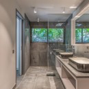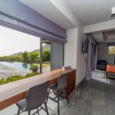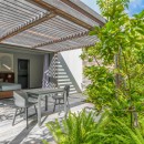 The shared spaces are a visual treat and begin with the pool terrace. Here, an immense infinity edge pool frames the lovely landscape and offers up an irresistible array of al fresco spaces to enjoy. There are multiple sundecks, an outdoor shower, the pool, and the covered verandahs. These include an outdoor living room area, a barbecue space with dining area, and more.