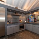Inside, the elegance of the design is impossible to ignore, but does not create an austere or unwelcoming atmosphere. Instead, the coolness of the stone floors, the coziness of the creamy upholstered furnishing, and the warmth of the boldly colored artwork together in a perfect harmony. You will notice this most in the great room. With its open floor plan, it includes the massive sectional sofa that frames the entertainment area, a casual breakfast bar, and a formal dining space. All of it gazes into the modern, gourmet kitchen. Also an open air design, it is equipped with the very best appliances and gear and allows you to make meals or snacks without missing a thing.