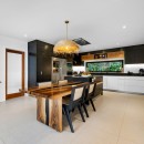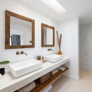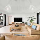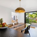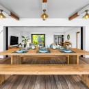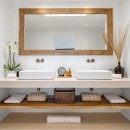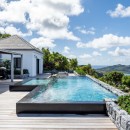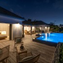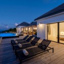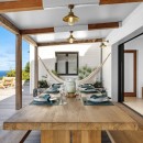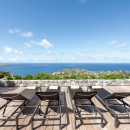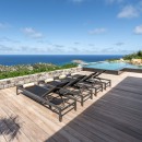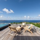 The terrace of Villa Mao is a true oasis, ideal for sunbathing and indulging in leisurely reading sessions. The sparkling heated swimming pool, adorned with black rocks, serves as the centerpiece of the deck, offering a captivating view of St-Martin. Close to the pool, a comfortable hammock invites relaxation, while the covered terrace provides a perfect spot to unwind, swept by refreshing sea breezes. The al fresco dining area, complete with a wooden dining table and long benches, invites you to savor delicious meals in a tropical setting. Finally, a small outdoor lounge located at the end of the pool provides a privileged space to sip cocktails in the evening, while marveling at the crystal-clear waters of St. Barths.