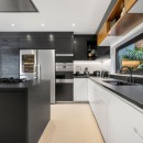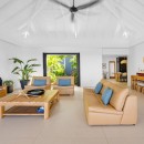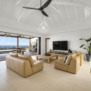 Designed on a single level, Villa Mao welcomes guests into a large, bright, and comfortable living room that seamlessly opens onto the terrace. From there, you can enjoy the panoramic view of the ocean and lush tropical garden at the back. The living room features a generous sofa and an HDTV, all under a vaulted ceiling, creating an intimate and relaxing atmosphere. Just a few steps away, the fully-equipped kitchen, with its center island, provides a cozy dining area for four guests. It also offers a delightful view of the garden, adorned with swaying palm trees, creating an idyllic backdrop.