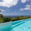Villa Rose Dog on St. Barts is a stunning new property set into the lush greenery of a Deve hillside, the perfect choice for a family vacation or an island getaway with friends. The unusual name of the villa is inspired by a stylized graphic image of a rose colored terrier that adorns a main wall.