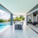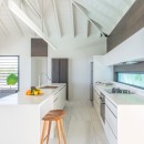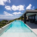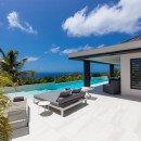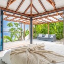Guests will enjoy jawdropping panoramic views of Petit Cul de Sac, Toiny Beach and the sparkling Caribbean Sea. The three-story estate is designed for an indoor/outdoor lifestyle that encourages a rejuvenating tropical vacation. Chic contemporary styling with a sophisticated color palette of neutral tones in creamy whites, soft grays and black accents punctuated by delightful touches of pattern are found throughout the villa, and interesting architectural details like rich wood shutters, shaded lanais and white tile flooring enhance this striking estate home.