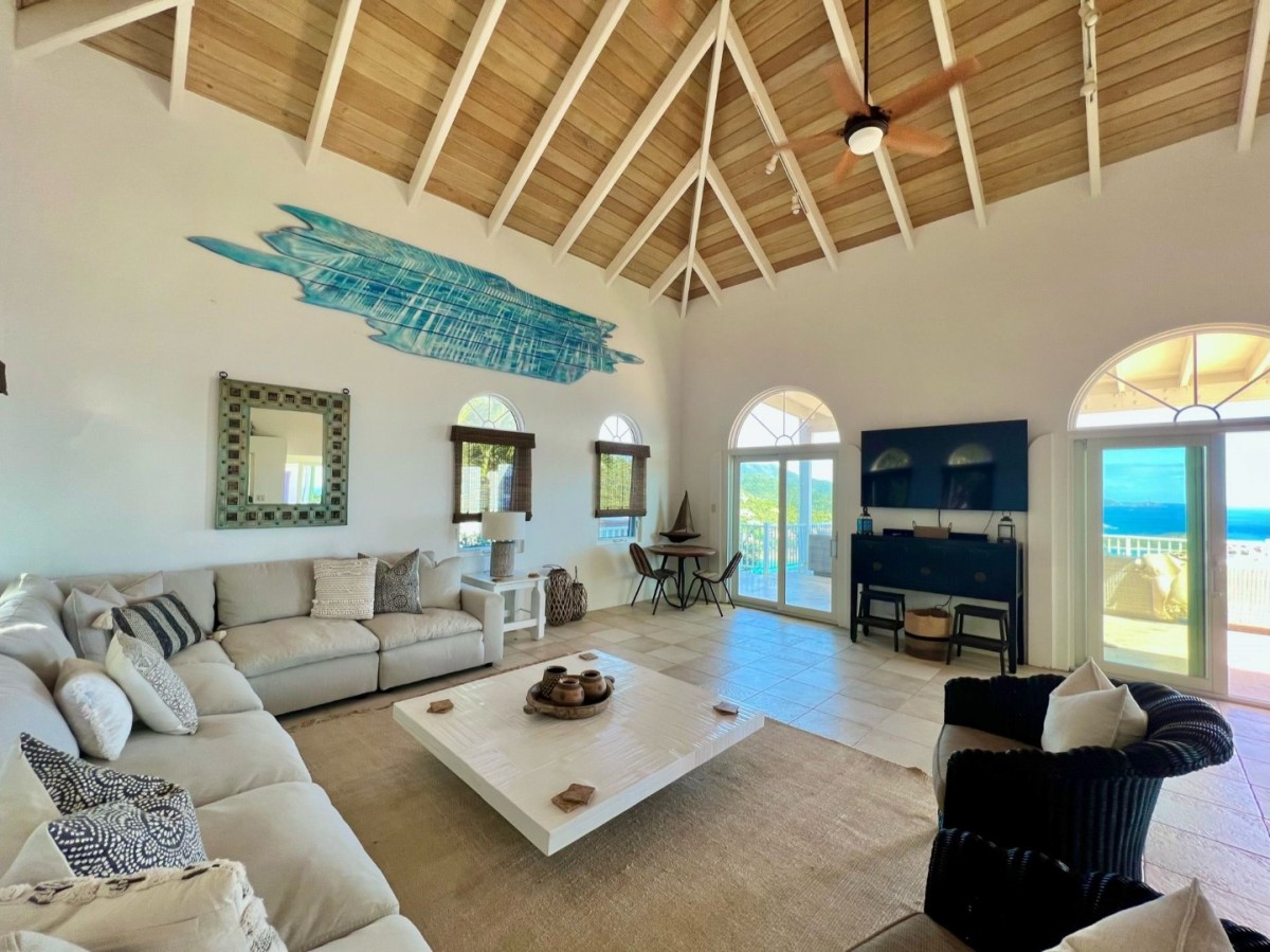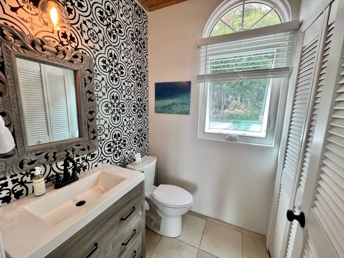 Bedroom 5: Bedroom with a king-size bed, single bed, ceiling fan, A/C, WiFi, ocean view, access to the terrace, and en-suite bathroom with shower, vanity and WC. 2 adults and one child maximum.