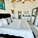 Bedroom 4: Bedroom with a king-size bed, single bed, ceiling fan, A/C, WiFi, ocean view, access to the terrace, and en-suite bathroom with shower, vanity and WC. 2 adults and one child maximum.