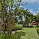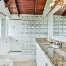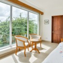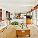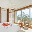 On the lower level, there are two more air-conditioned bedrooms,private terraces with sea views, and ensuite bathrooms. (When booking the 1-bedroom rate, this level will be locked off during your stay.)