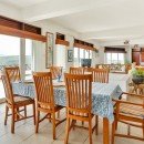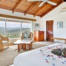 Upstairs from the dining area, you’ll find the grand Primary bedroom, featuring a king-sized bed positioned to capture the stunning views through a large picture window. This air-conditioned sanctuary includes a walk-in closet, an ensuite bathroom, and its own private balcony for additional enjoyment of the incredible scenery.