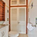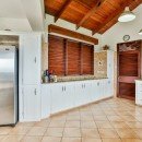 Enter through an arched, gated entryway into the lush gardens of the entrance courtyard. The main floor welcomes you with a spacious open-plan sitting area, complete with a Smart TV and a music center. Adjacent to this is the dining area, an east-facing patio, and a generously sized kitchen equipped with modern amenities. The terrace, which adjoins the pool, is perfect for outdoor dining and offers stunning sunset views. The large pool, surrounded by sea stones, is complemented by a wooden sun deck, offering a tranquil spot to soak up the Caribbean sun. There’s also an unheated plunge pool and an outdoor shower on the expansive pool deck.