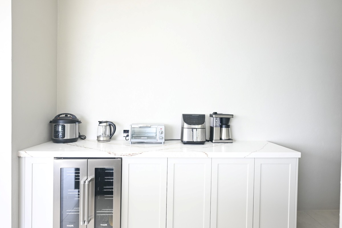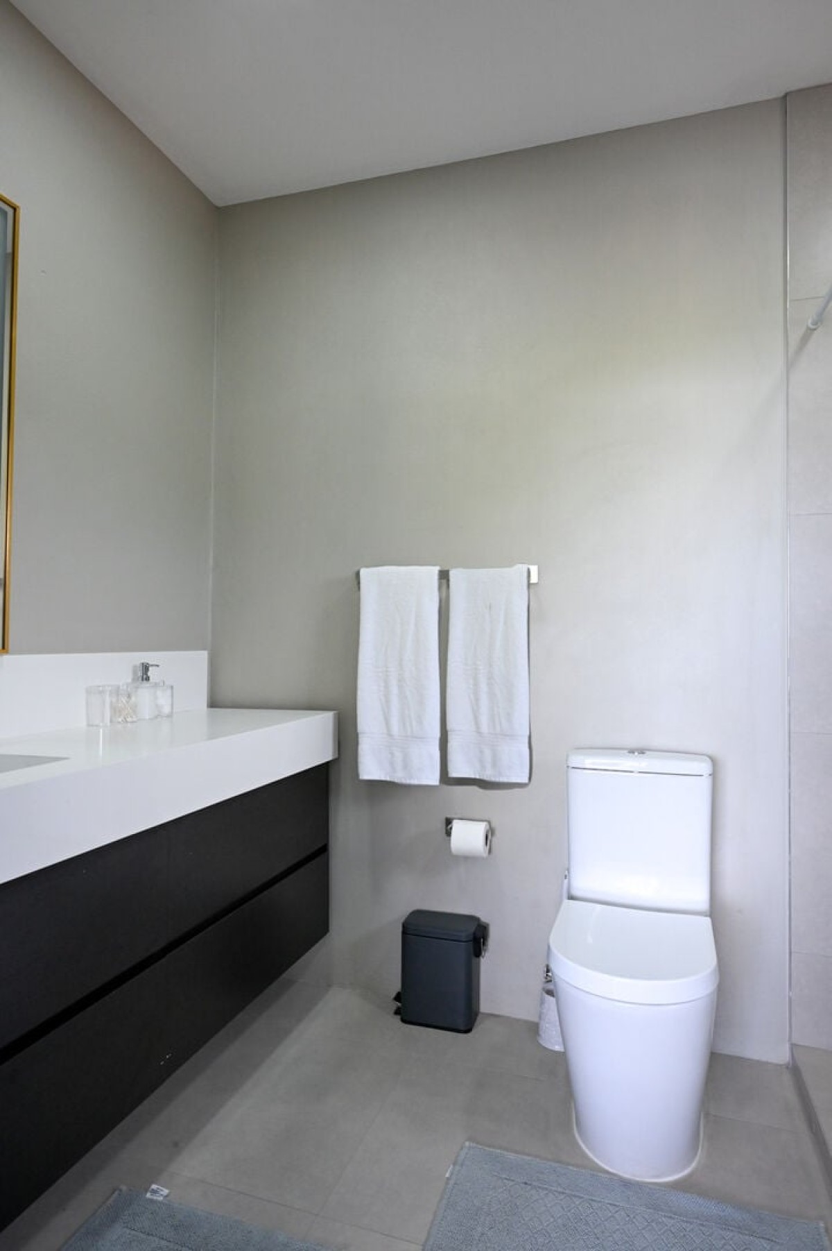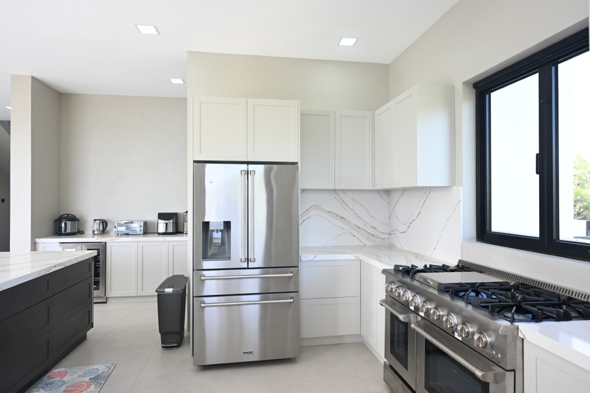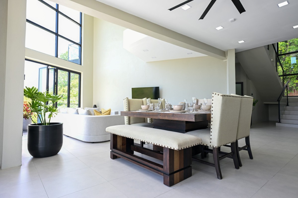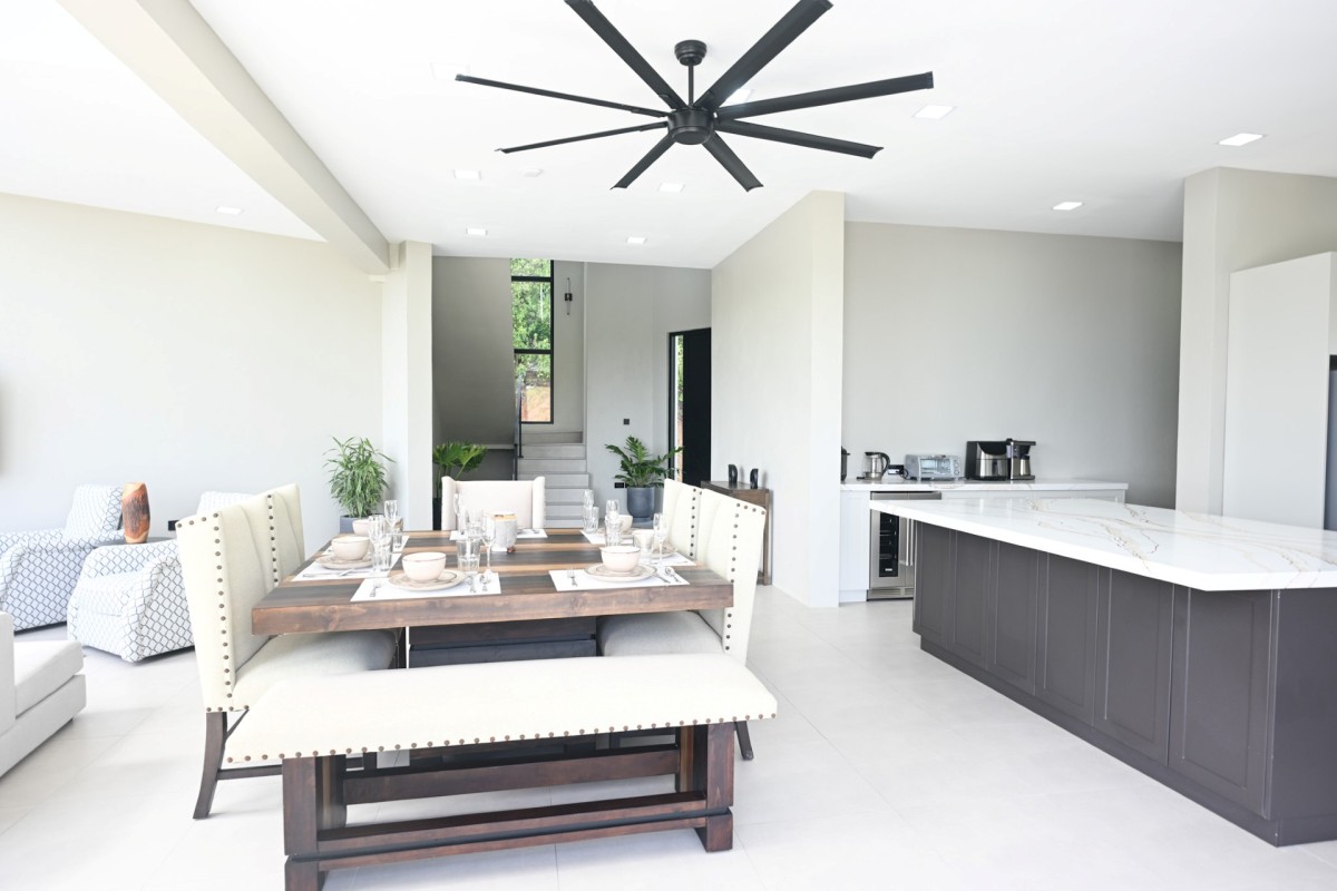 There’s also a dedicated home office with air conditioning and a full workspace ideal for remote work. Additional conveniences include laundry facilities, a backup water system, and housekeeping service, all included in your stay.