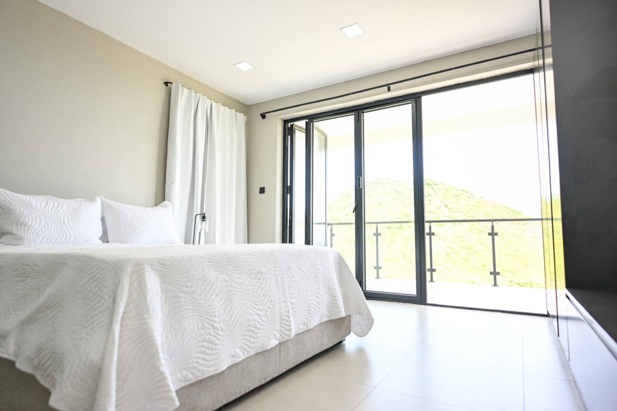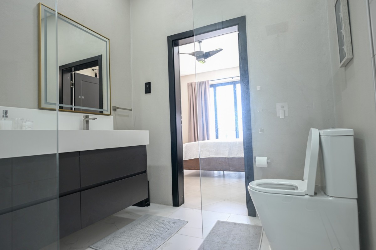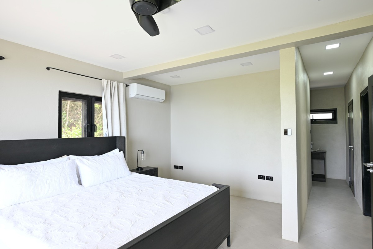 Bedroom 4: Bedroom with a king-size bed, A/C, ceiling fan, private balcony, and en-suite bathroom with shower, double vanity, and WC. 2 guests maximum. This room also has a ramp where one can enter through the balcony entrance with a wheelchair if needed.