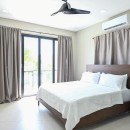 Bedroom 1: Master bedroom with a king-size bed, A/C, ceiling fan, walk-in closet, private balcony, and en-suite bathroom with bathtub/shower, bidet, double vanity, and WC. 2 guests maximum.