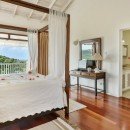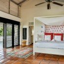 Bedroom 1: Master bedroom with a four-poster queen-size bed, WiFi, AC, ceiling fan, balcony and en-suite bathroom with shower, vanity and WC. 2 guests maximum.