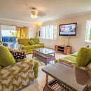 The elegant and typically Caribbean villa offers a large and inviting open air patio upstairs and downstairs, perfect for relaxing and appreciating the views and the cool ocean breeze. The spacious open-plan living room on the ground floor consists of a double sitting room, a fully equipped kitchen that opens out onto the shaded patio where you will find a dining area and the swimming pool equipped with sun loungers, parasols and tables.