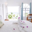 The home has four bedrooms which all offer private balconies with views of the sea. On the top level, the master bedroom enjoys a panoramic view, and the beauty Marisule has to offer. The main bedroom has a king-size bed and an en suite bathroom with a shower and double vanity. There is also a walk-in closet in the room.
