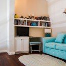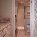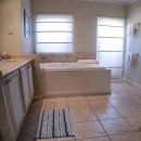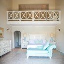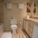 The three bedrooms are divided between upper and lower levels. Two are on the main level with private baths, and dual singles or king beds. The master suite is above and features a king bed and private bath. It also has a mezzanine with a sofa bed properly sized for two children. All of the bedrooms feature entertainment systems.