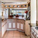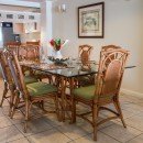 The townhouse features a generously sized ground floor encompassing an open-plan kitchen, dining area, living room, and an open-air patio. The dining room is elegantly furnished with a glass-top dining table that seats 6, seamlessly connected to the spacious living room. This room is equipped with a stereo, cable TV, and DVD player, and it stays comfortably cool thanks to central air-conditioning. French doors lead from the living room to the patio, offering picturesque views of the Rodney Bay Marina adorned with luxury yachts and sailboats. The townhouse also provides a well-equipped kitchen, a convenient laundry room, and a small powder room.