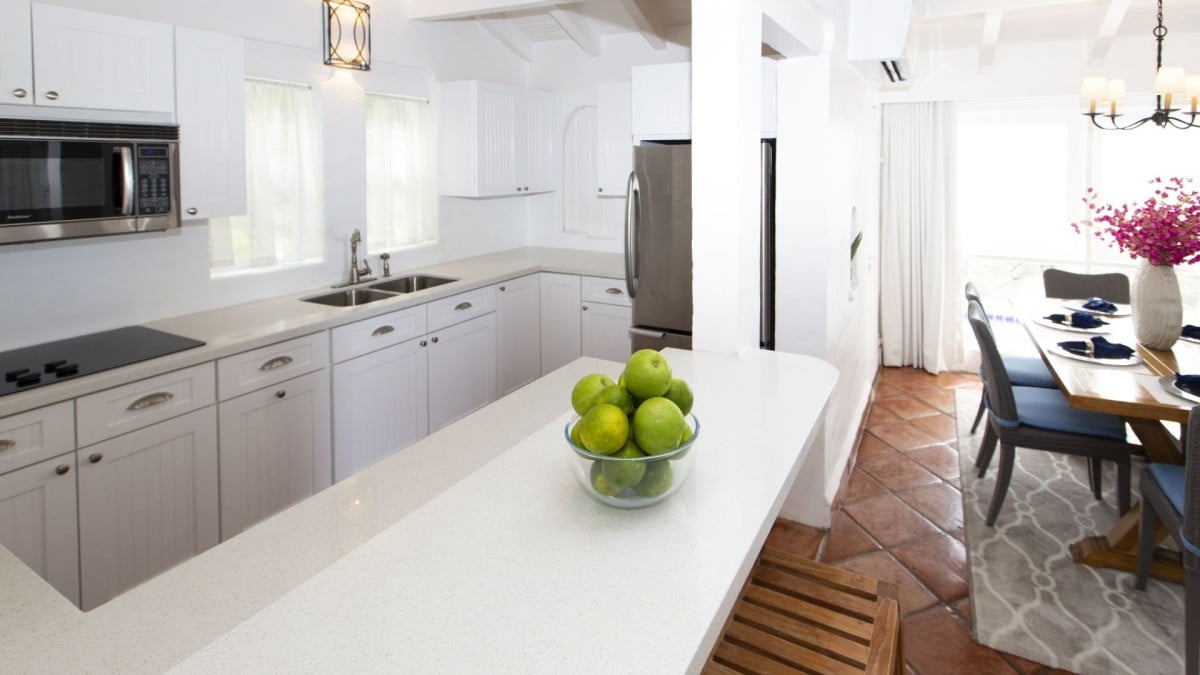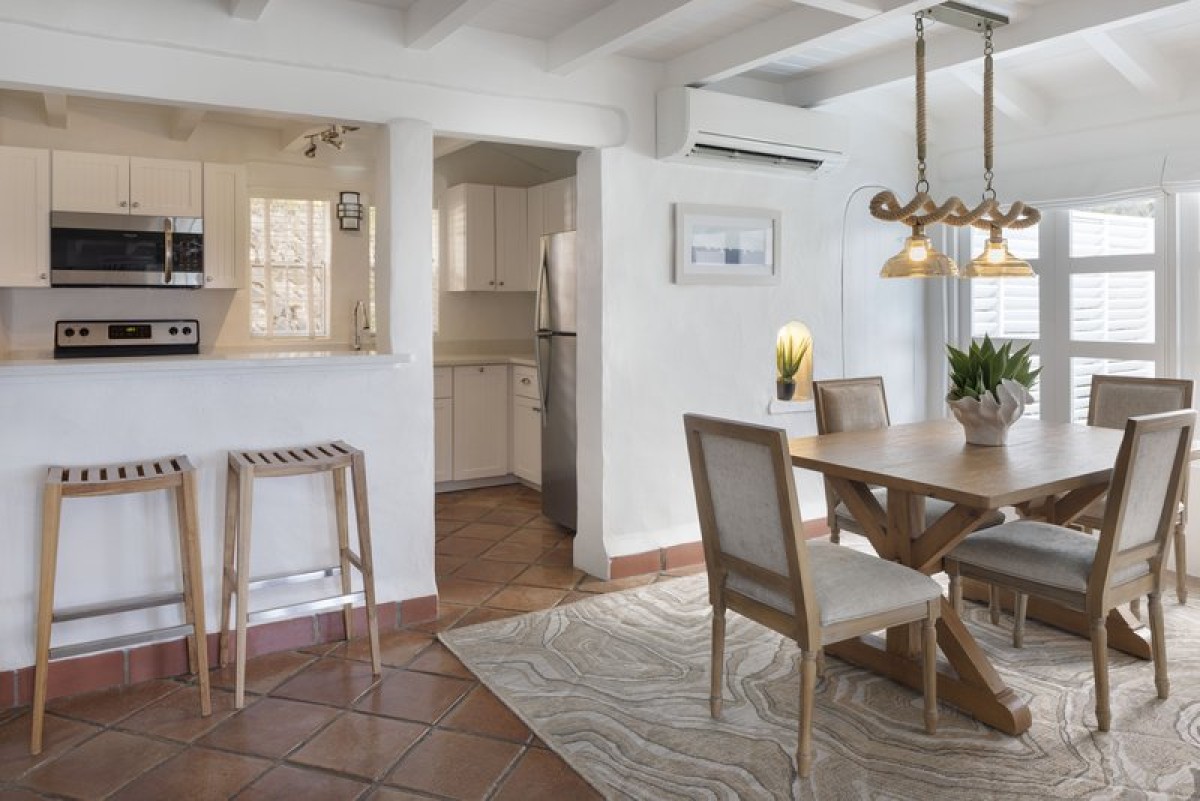 The stylish decor is upscale and comfortable making the villa your perfect home away from home. You will be perfectly content in the air-conditioned bedrooms. The master suite has a king-sized bed and a spa-quality ensuite. The second bedroom is equipped with two single beds making it the perfect spot for the children who are always welcome at Windjammer.