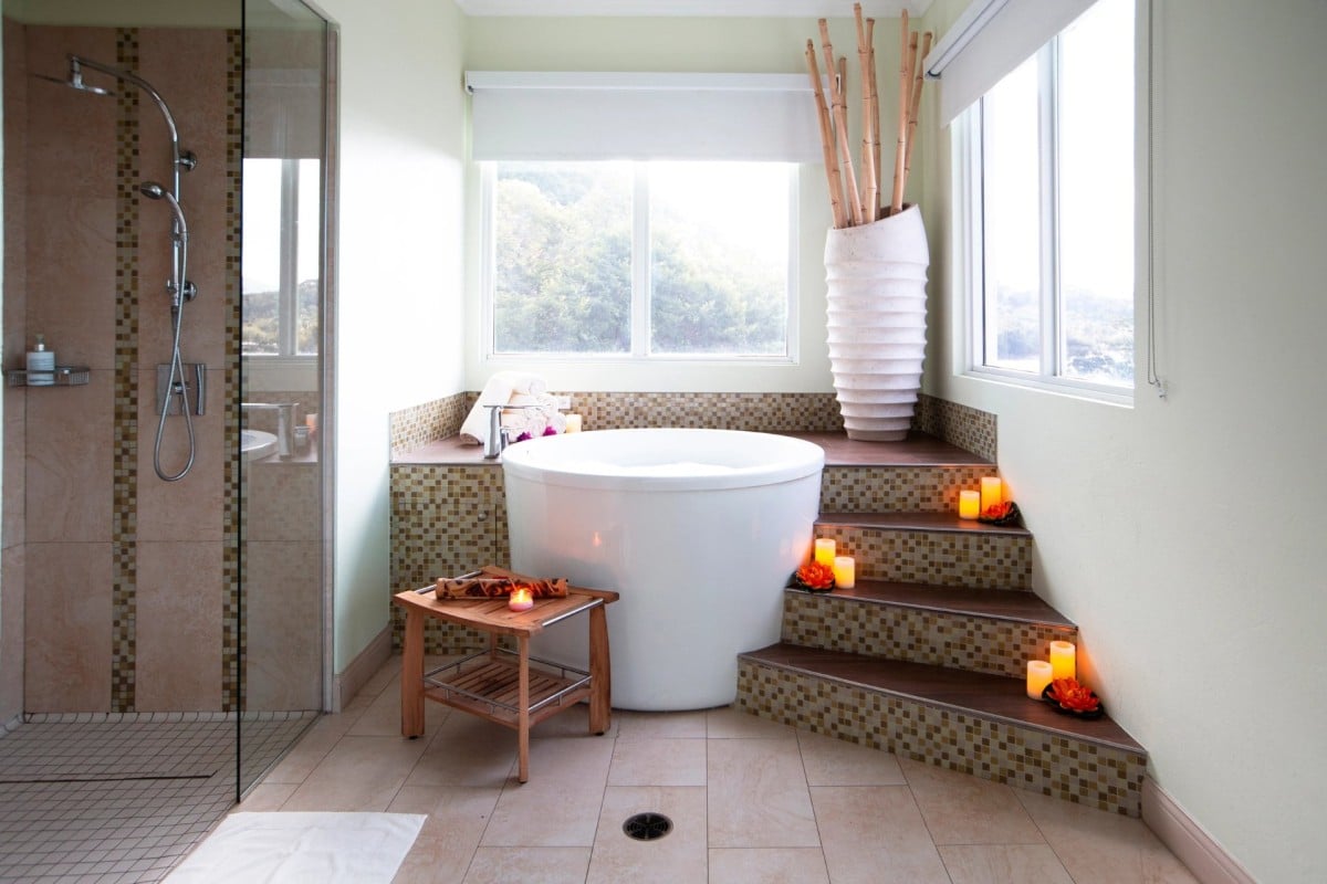 Inside you will find a sizeable living space decorated in a contemporary style with a soothing mix of neutrals and blue to create a serene feeling within your villa. Your three bedrooms will provide plenty of space for sleeping six guests. The master suite contains a king-sized bed and a private ensuite. The other two rooms contain either two single beds or a queen sized bed. All are full of soft linens, and the views outside the windows are guaranteed to be phenomenal.