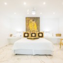Bedroom 3: Bedroom with a king-size bed, A/C, ceiling fan, TV, kitchenette, walk-in closet, garden view and en-suite bathroom with bathtub, shower, double vanity and WC. 2 guests maximum. This bedroom is located on the Ground Floor.