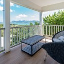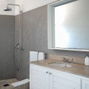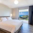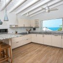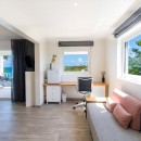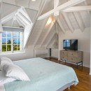 Bedroom 3: Upper floor bedroom with a king-size bed, A/C, ceiling fan, TV, ocean view,  and en-suite bathroom with shower, vanity and WC. 2 guests maximum. (accessed from a staircase leading from the living area).