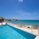 Two dining areas—one indoor, one alfresco—are accompanied by veranda loungers beside an infinity pool that spills practically into the ocean. The stairs to the beach and ocean are directly off the pool’s far wall. Not ten steps take guests from brunch to a walk on the beach.