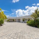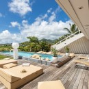 The lower level is a true retreat, offering three additional bedrooms, two of which have direct access to the private pool. Each bedroom has its own en-suite bathroom, providing guests with an intimate, peaceful space to relax after exploring the island’s beaches and natural beauty. The pool area is surrounded by comfortable lounge chairs, offering the perfect spot to soak up the Caribbean sun or enjoy a refreshing swim.