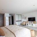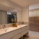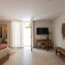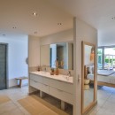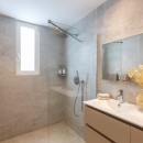 Also on this level are two beautifully appointed bedrooms, each with its own private en-suite bathroom. These rooms offer convenience and serenity, featuring high-end materials and thoughtful design touches that echo the villa’s connection to the surrounding landscape.