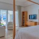 Bedroom 5: Ground floor bedroom with a king size bed, A/C, TV, WiFi, sea views and en-suite bathroom with shower, vanity and wc. 2 guests maximum