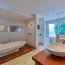 Five of the six bedrooms feature king-size beds, while the sixth is in a cozy cottage separate from the main house with two twin sized beds that can be pushed together to form a king. Every bedroom has it's very own large plasma TV, DVD, satellite, private bathrooms with showers (bath tubs in two bathrooms), air-conditioning, and ceiling fans. An air-conditioned bedroom studio, which features twin beds and a bathroom, is at the guests' disposal to accommodate staff, nanny, or young adults.
