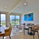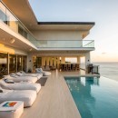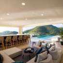 This expansive living space seamlessly spills out onto the infinity pool deck, commanding panoramic views of the ocean and the picturesque Indigo Bay, framed by rolling hills cascading into the crystalline waters.