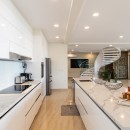 Upon stepping into the expansive foyer on the ground level, you'll be greeted by a grand spiral staircase and an elevator that whisk you to the first lower level. Here, an expansive air-conditioned living and kitchen area beckons, where cherished moments with loved ones unfold.