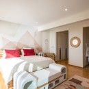 The sixth bedroom reveals an adjoining living area and a well-equipped kitchenette, perfect for a nanny or those desiring added seclusion.