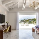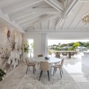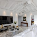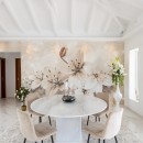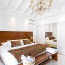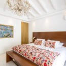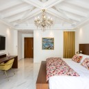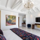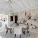 The interior of Villa Fleurs de Lys is a harmonious blend of classic French luxury and contemporary elegance, adorned with modern art pieces that enhance its sophisticated ambiance. The decor features sumptuous fabrics, fine furnishings, and intricate detailing, creating an atmosphere of opulence and refinement.