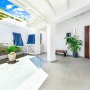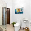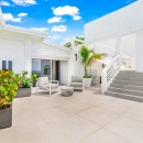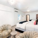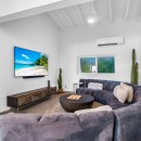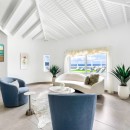 The villa’s crisp white design and open layout create seamless indoor–outdoor living, framed by turquoise waters and lush green mountains. The spacious living room offers stunning ocean vistas, while the beautifully equipped kitchen and multiple communal areas provide the perfect balance of social connection and relaxation.