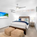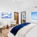 Each of the six airy bedrooms features a neutral palette, abundant natural light, and a private ensuite bathroom. Additional amenities include a fully equipped gym with sea views, WiFi, cable TV, and a sound system.