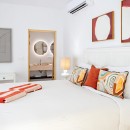 Bedroom 6: Ground floor bedroom with a king-size bed, A/C, ceiling fan, TV, safe, access to the pool terrace, and en-suite bathroom with shower, vanity, and WC. 2 guests maximum.